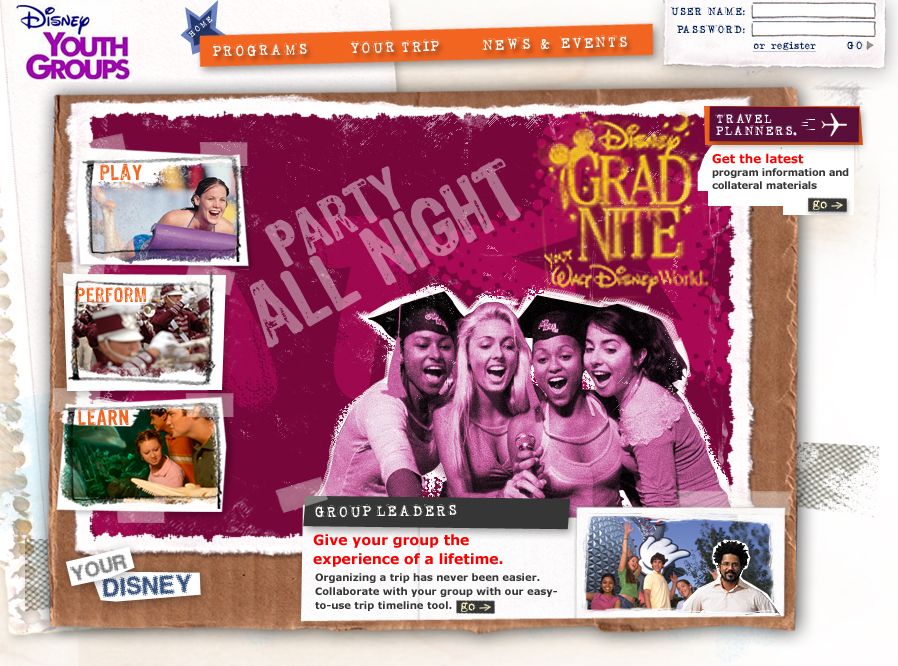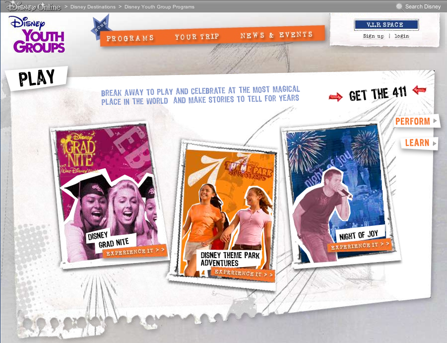 Disney’s Youth Group Programs needed a new website that would engage various youth audiences while being informative for their parents, an adult audience.