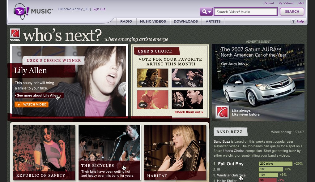 Established music program needed a refresh to attract new sponsors and a new user base. With existing programs more focused on mainstream artists, Who’s Next was a platform for Yahoo! editors to have more control to cover what they saw as emerging artists users should know about.